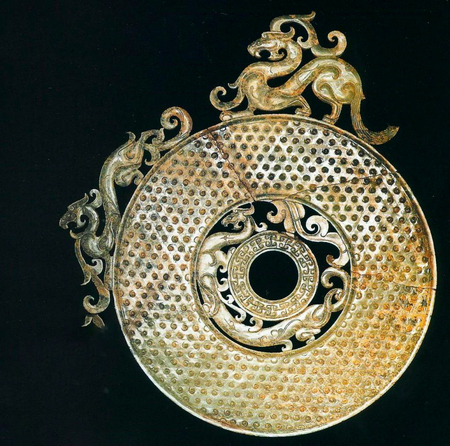 Диск Би с двойным драконовским мотивом, Период Сражающихся царств. Диск Би, эпоха Чжоу.
