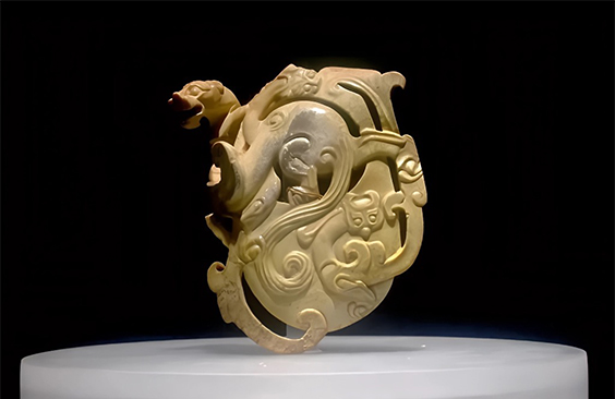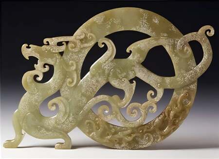 Эпоха Сражающихся царств и династия Хань стали временем перехода общества и развития нефритового искусства. Можно заметить, что в этот период мастера совершенствовали технику резьбы по нефриту, вводили сложные и выразительные орнаменты с изображениями животных, обращая особенное внимание на передачу глаз, рта, зубов и когтей.