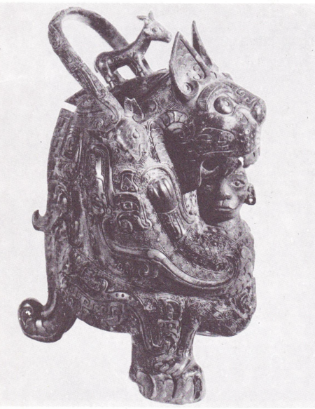 Сосуд с крышкой в форме фантастического животного. Ритуальный сосуд «куай» в форме тао-тё. Период Шан.