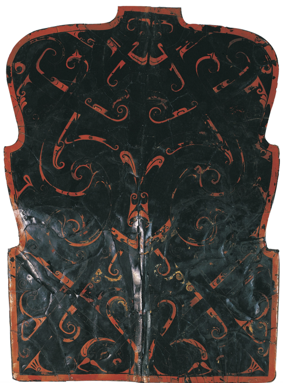 В эпоху Шести династий в китайском лаковом производстве произошли заметные изменения и новшества — на изделиях начали появляться сюжеты, сцены. Появились и надписи, поясняющие смысл и добавляющие контекст изображенному.