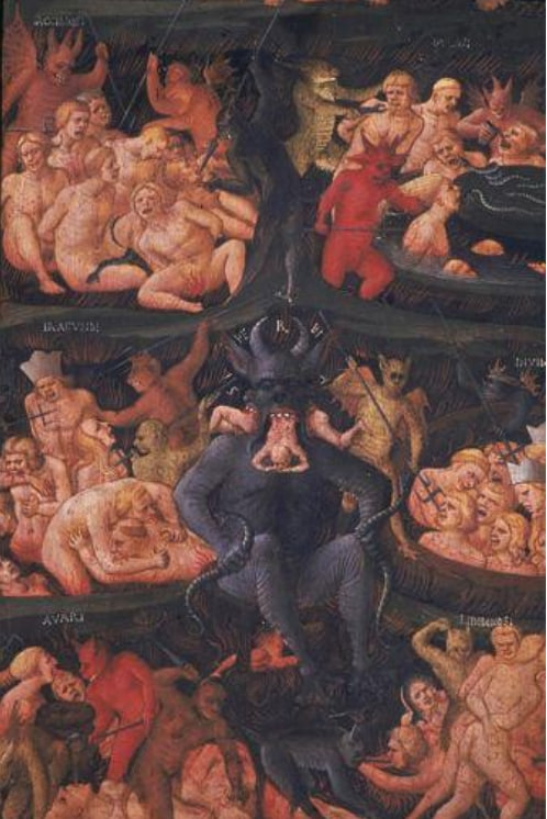 Потому что Босх идеален для религиозной педагогики: он даёт зрителю не только страх, но и зрелище. Сравним с другими визуализациями ада: у них всё честно: огонь, мучения, зубы, клыки, серы.