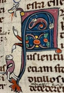 Яркий пример — вайверн, извивающийся по краю листа в Псалтыри де Брайлес