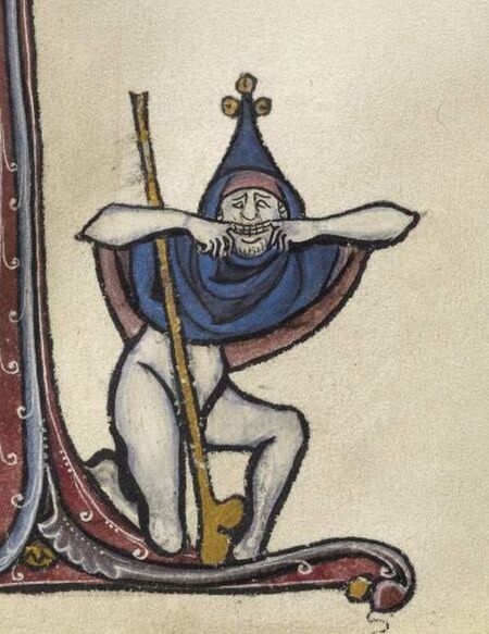 В религиозной и квазирелигиозной иконографии часто встречается странное смешение: святой сюжет в центре страницы — и совершенно разнузданные, почти фарсовые сцены по краям. Там, где герои миниатюры молятся, страдают или проповедуют, внизу на полях мужчины и гибриды демонстративно поднимают одеяния, животные и монстры имитируют сексуальные жесты, а анусы, гениталии и откровенная телесная комедия становятся «альтернативным комментарием» к священному тексту.
