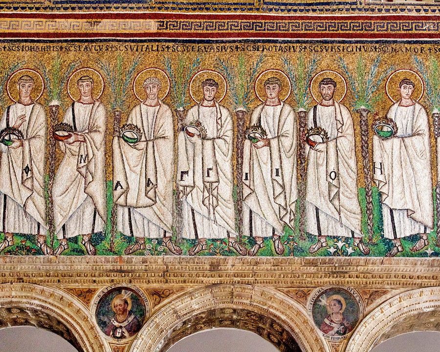 Шествие праведных мужей в базилике Сант-Аполлинаре-Нуово, Италия, VI век