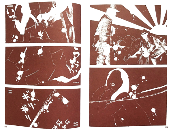 Говоря про визуальную составляющую — Хаяси использовал тушь, как материал для основы комикса, и коллаж / фотонегативы, которые здесь, по сути, являются ключевой особенностью всего рассказа.
