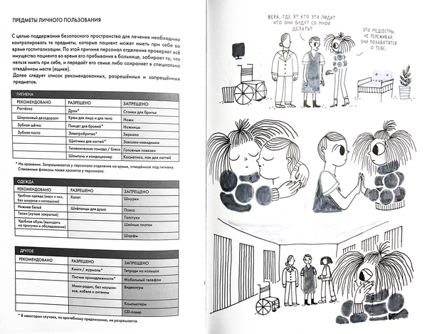 Первое, что обращает на себя внимание, — это то, как Беа совмещает фломастерные рисунки с фотографиями медицинских документов.