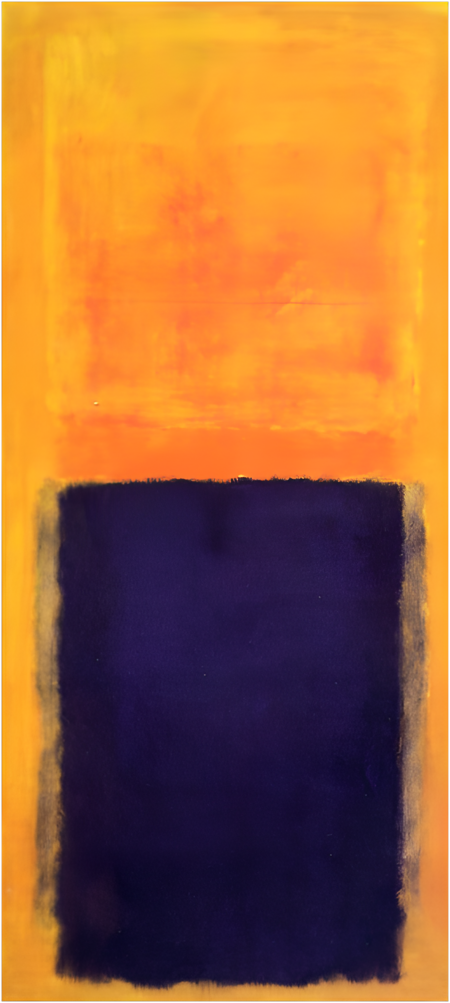 Зрелый период: классические цветовые поля: С 1949 года и до самой смерти Ротко разрабатывает свою каноническую формулу: несколько прямоугольников, окрашенных в насыщенные цвета, парящие на монохромном фоне. Эти прямоугольники лишены четких геометрических границ; их края размыты, что создает эффект свечения, вибрации и глубины. Как говорил сам художник, его интересовала не живопись самой по себе, а передача базовых человеческих эмоций — «трагедии, экстаза, гибели»